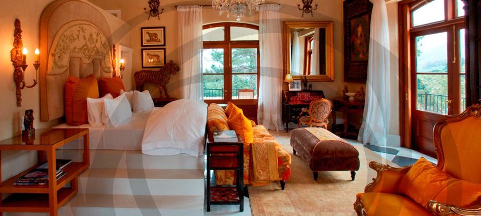 A multi-award-winning property which consists of 11 suites and 5 private villas, boasting 2, 3 or 4 bedrooms. Each room has its own balcony or terrace and is decorated with eclectic opulence – silks, Persian rugs, Indian chandeliers, French armouries, Asian artefacts and some glorious antiques. Just a short distance from some of the best wineries in the region and less than an hour from the delights of Cape Town, it is a haven of peace and tranquillity which is renowned for its food and unrivalled setting, as well as for its highly personalised and dedicated service.